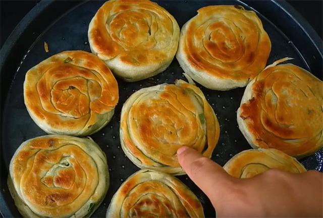 在喧嚣的都市中,总有一些味道能瞬间勾起我们对家的思念。今天,就让我带你解锁一道家传美味——吊炉葱花饼,让你在家也能享受到外面排队才能买到的美味,而且,一次做八个都嫌不够吃哦! 准备食材: 高筋面粉、盐、温水、食用油、五香粉、葱花 具体做法: 1.今天和大家分享一个吊炉葱花饼的做法,它的特点就是外酥里软,层次丰富,葱香味十足,做法非常简单。首先我们准备高筋面粉300克,加入三克盐增加筋性,温水170毫升,水温45度,微微烫手即可,搅成面絮状,我们加入约20毫升的食用油,加油能够使饼更加柔软,且和面的时候不容易粘手,我们把面絮揉成柔软的光滑面团。 2.放在案板上,直接搓成长条,下8到10个面剂。 3.把面剂揉搓成光滑的长条状,我们在盘子的底部刷上一层油,然后把面剂放在盘子中,面剂上再刷上一层油,这样醒发出的面剂更加柔软,我们盖上保鲜膜醒发40分钟以上。 4.接下来我们来制作油酥,面粉30克,一克五香粉,三克热盐,热油40毫升,搅拌成稀油酥备用。 5.多准备一些小葱叶切碎备用,不要用葱白,太硬容易把饼戳破。 6.接下来我们在案板上抹上少许的油,把醒好的面剂用手抻长按扁,再用擀面杖把它擀薄至半透明状,擀的越薄做出的饼口感越好,然后均匀的涂抹上油酥,撒上一层葱花。 7.然后我们的右手拽住拎起面皮,左手使面皮自然裹住葱花,最好裹进空气,这样做出的饼皮会更加酥脆。 8.然后自然盘起,这样我们的饼坯就做好了。 9.也可以像这样上下折叠面皮,然后把面皮抻长。 10.也是自然盘起,这样我们的饼坯也做好了,这两者的效果相差不大,做好的饼坯盖上保鲜膜松弛五分钟,这样烙出的饼会更柔软。 11.接下来我们起锅开小火,油温微微热,我们就下入饼坯,因为这个饼层次特别薄,高油温下锅容易烙糊,烙至底面微微变色,我们就要翻面,翻过来烙至另一面呈微黄色,我们再次翻面,饼的层次特别薄,所以说我们要小火慢烙,反复翻面,直至烙至两面金黄酥脆即可出锅,全程大约烙制4到5分钟即可。 |