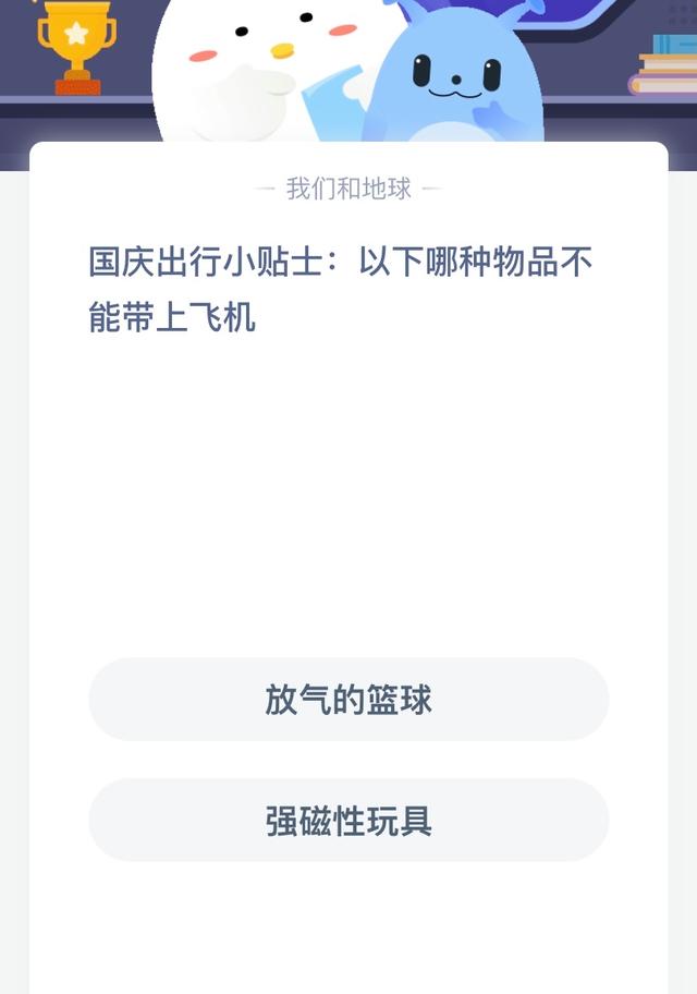 当前位置:首页>科技>以下哪种物品不能带上飞机?蚂蚁庄园每日答案