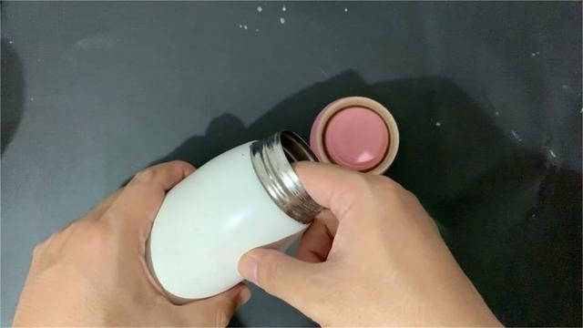 现在,加入适量的温水,大约占杯子的2/3或1/3即可。温水可以帮助鸡蛋壳中的有效成分更好地发挥作用。然后拧紧盖子,开始摇晃保温杯。摇晃时,要用力一些,因为鸡蛋壳的主要成分是碳酸钙,它遇到温水后会分解出一种物质,能有效去除杯子底部和内壁的水垢。