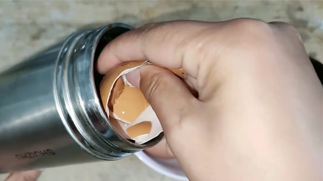 首先,我们要准备一些鸡蛋壳。每次吃鸡蛋时,别急着扔掉它,我们可以收集起来备用。鸡蛋壳在这里发挥了意想不到的作用。接下来,用手捏碎鸡蛋壳,使其变成碎片状,然后塞进保温杯里。这样可以增加鸡蛋壳与保温杯内壁的接触面积,提高清洁效果。