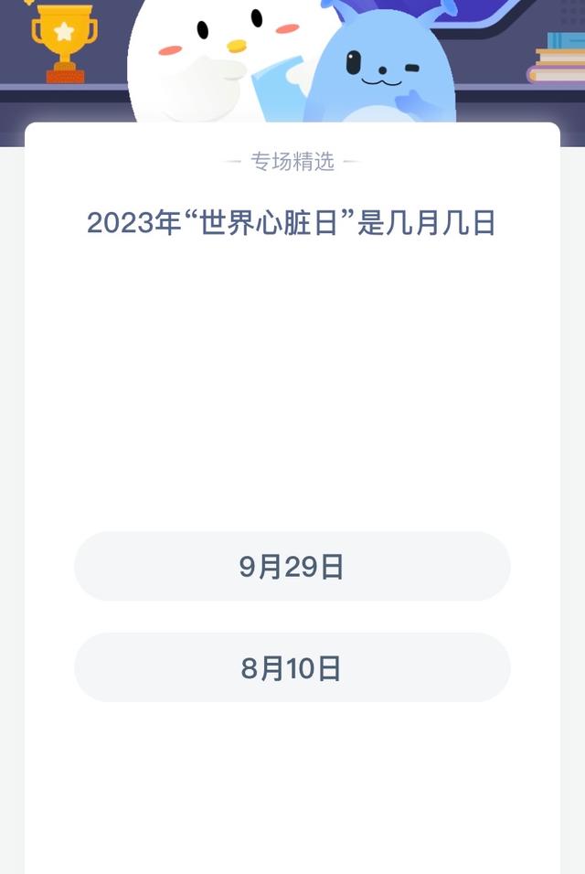 当前位置:首页>科技>2023年世界心脏日是几月几日?蚂蚁庄园每日答案