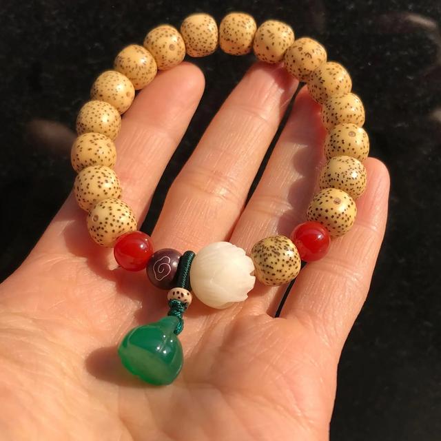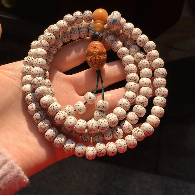 第六星月菩提它是植物的种子,你离近看的话它的表面全是天然的植物痕迹,没有完美无瑕的,也不可能每颗珠子都长得一模一样,如果您没有千元的预算,你就别奢望星月的珠子上星点还得小还得少,一颗连星都没有珠子还得大那是做梦。 |