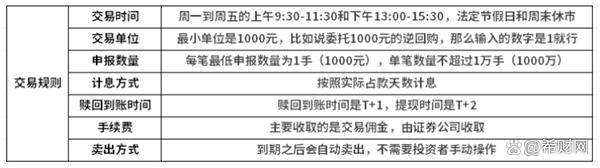 哪些理财方式几乎不会亏损?1、国债逆回购 国债逆回购本质上是一种短期贷款,是指个人通过国债回购市场把自己的资金借出去,以此获得固定的利息收益。 国债逆回购是以国债为基础进行交易的,而国债的安全级别极高,所以国债逆回购出现亏损的可能性极低。国债逆回购的基本信息如下。 (1)期限品种。 包括1天、2天、3天、4天、7天、14天、28天、91天和182天,可以根据投资者的需求进行选择。 (2)购买渠道。 国债逆回购可以在证券公司的手机APP和电脑端的交易软件上购买,也可以选择前往证券公司线下营业部购买。购买之前,需先找一家证券公司开通一个证券账户。 (3)交易规则如图。