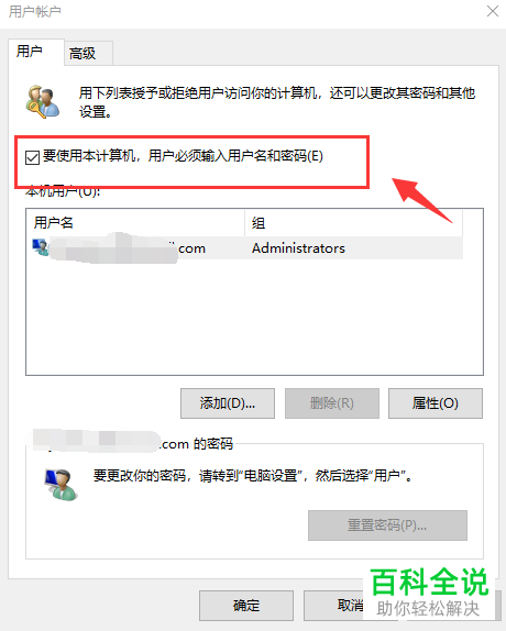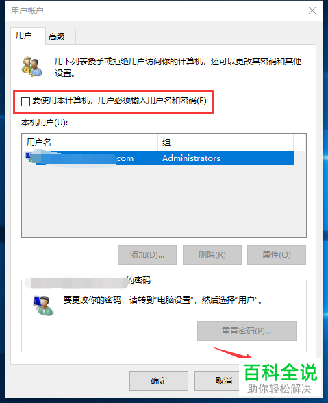 4. 打开用户帐户窗口后,将“要使用本计算机,用户必须输入用户名和密码”选项前的勾选去掉,然后再点击“确定”。