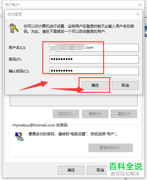 5. 打开自动登录窗口后,将用户名和密码输入,然后再点击“确定”即可。
