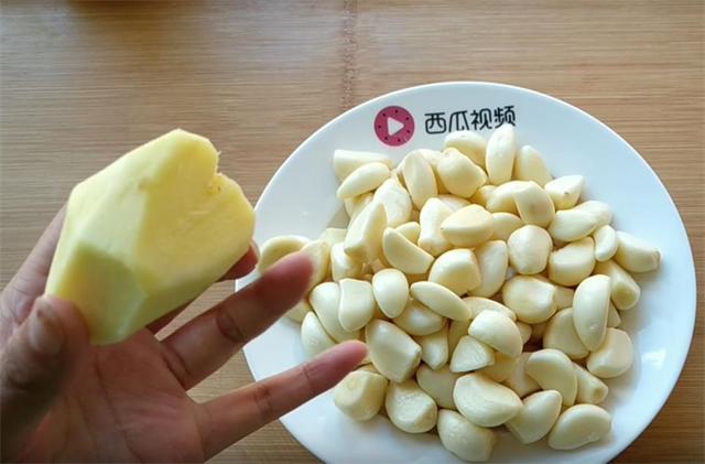 2.接下来我们再准备生姜50克,去皮备用,大蒜一斤去掉皮,洗干净晾干备用。