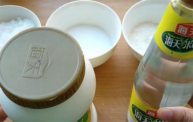 6.然后我们准备配料,海天白米醋250毫升,海天黄豆酱500克,味精、盐各80克,糖100克,我多次试验过这个比例调出来的味道是最正宗的。