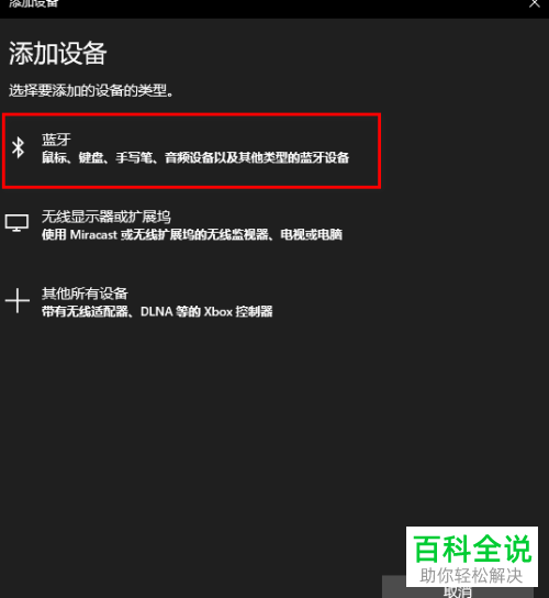 5. 在如图页面,点击【 】号,弹出页面选择“蓝牙”