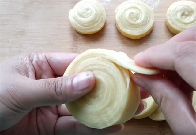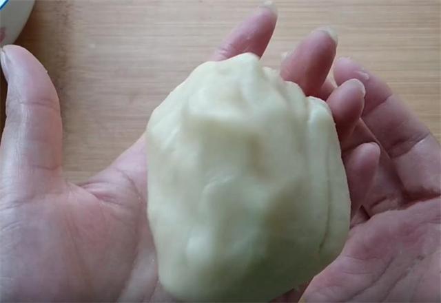 5.把做好的油酥放在面饼上,用包包子的方法把油酥包紧实,一定要捏紧,防止油酥露出。
