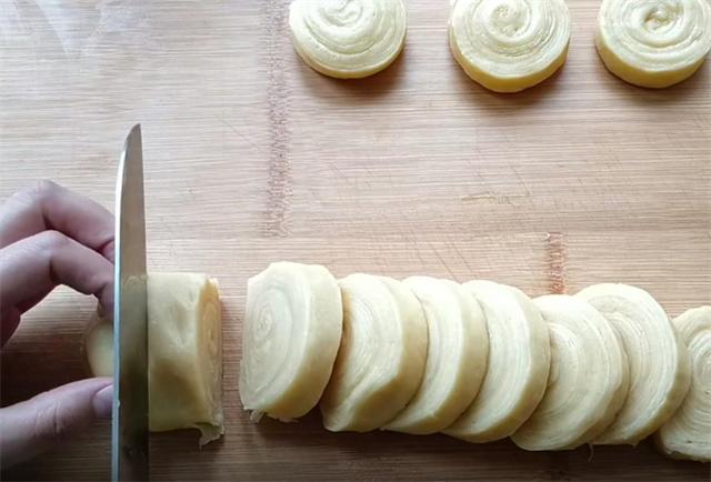 9.我们把它切成1到1.5厘米左右的薄饼,越薄越容易熟。