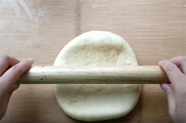 4.然后我们稍微揉搓排气,把它用擀面杖擀成圆形的大面饼。
