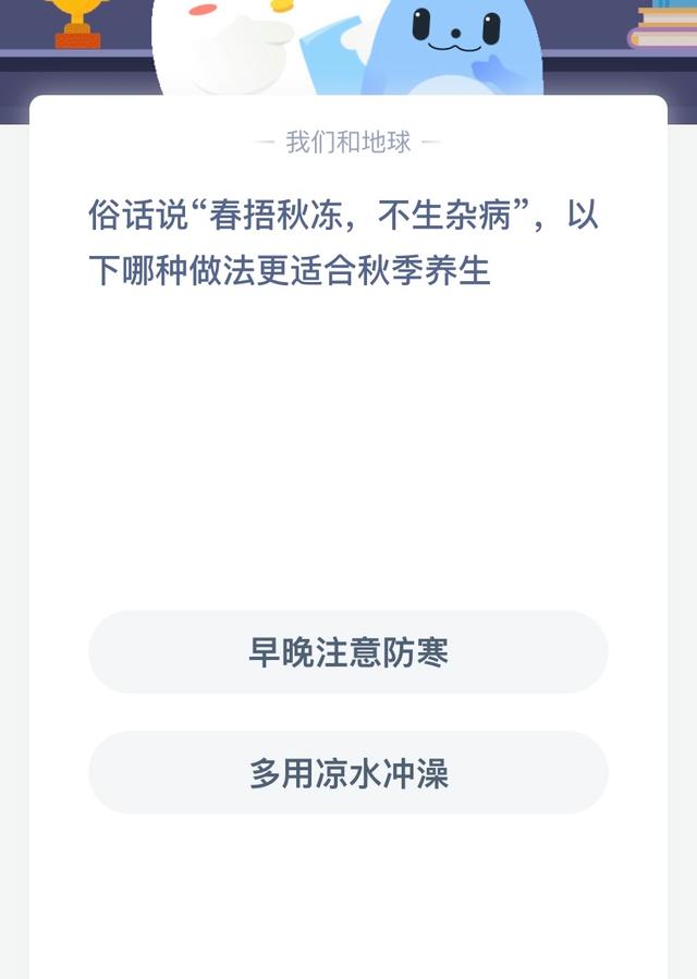 俗话说春捂秋冻,不生杂病,以下哪种做法更适合秋季养生?蚂蚁庄园答案 正确答案:早晚注意防寒 秋季,正是大自然变换的季节,气温由炎热的夏季逐渐下降,人们的身体也需要适应这种变化。中国有句古训,“春捂秋冻”,这句话告诫我们在秋季养生中要注意保暖,以防寒冷对身体造成不利影响。在这个秋天,让我们深入探讨一下“春捂秋冻”的养生智慧。 首先,让我们了解一下“春捂秋冻”的含义。这句话的意思是在春季时要注意保暖,而在秋季则要多留意冷空气的来袭。春季的温度虽然逐渐回升,但仍然不稳定,寒意未尽。而秋季则呈现出明显的温差,早晚温度较低。因此,养生之道在于早晚要特别留意防寒,避免身体受凉。 为什么秋季养生如此重要呢?首先,秋季是感冒和其他呼吸道疾病高发的季节。秋季干燥的天气和温差大的特点,使得人们容易感染病毒,导致咳嗽、流感等疾病的盛行。因此,防寒保暖是预防这些疾病的第一道防线。 秋季养生有助于调养身体,增强免疫力。适当的锻炼和饮食调理可以增强身体的抵抗力,帮助身体更好地应对寒冷和病毒。此外,秋季也是丰收的季节,吃新鲜的水果和蔬菜对健康非常有益。 那么,如何做好早晚防寒呢?以下是一些方法: 早晚气温较低,可以适当增加衣物的层次,穿上轻便但保暖的服装。特别是早上出门时,可以选择一件轻薄但保温效果良好的外套。 头部是人体散热较多的部位,戴帽子或头巾有助于保暖。保护头部免受寒风侵袭对防止感冒尤为重要。 脚部容易受寒,所以在秋季尤其要保持足部的温暖。选择合适的袜子和鞋子是关键。 保持规律的作息习惯,早晚的寒冷容易影响睡眠质量,养成良好的作息有助于保持体温平衡。 春捂秋冻的养生智慧告诉我们,要在秋季早晚特别注意保暖,避免受凉引发疾病。秋季是一个收获的季节,希望每个人都能通过良好的养生习惯,在秋天里健康快乐地度过。 (www.ws46.Com) |