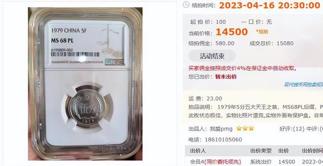 在硬分币中有5枚最珍贵的被合称为五大天王,其中5分它就有三枚分别是79年、80年和81年的5分,这三种5分除了80年单枚在1000左右,其它两个年份都是可以上万的,而最近拍卖成交的那一枚就是1979年的5分。