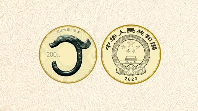 基本上硬币的背面采用文物的照片,正面则是常规的硬币图案。 比如上面这枚玉龙金币,就是如此简洁的设计。