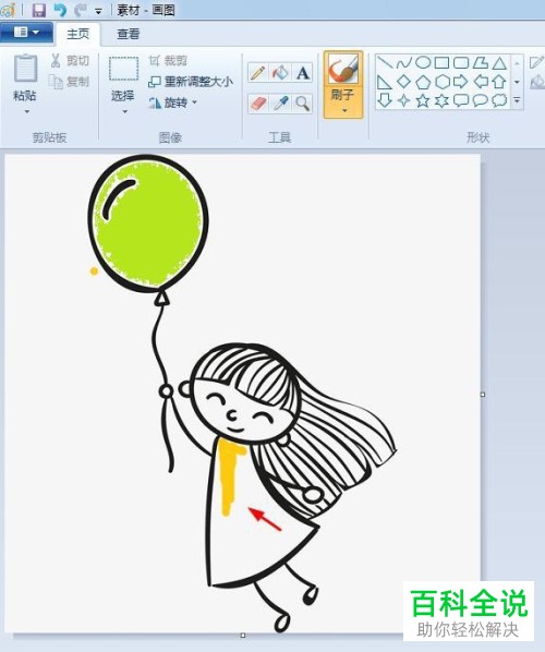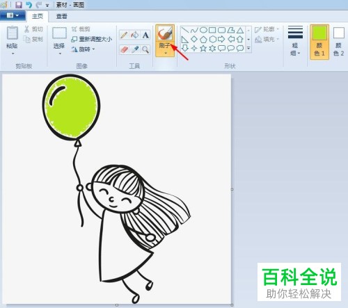 方法二 1.打开【画图工具】,在【主页】的菜单栏中,选择箭头指示的【刷子工具】。
