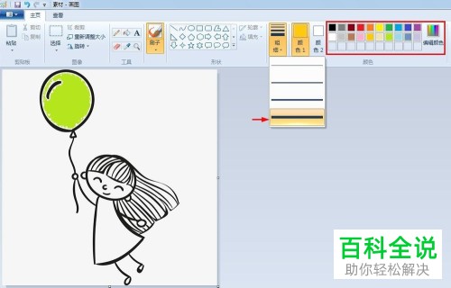 2. 出现【颜色板】,我们点击选择红色框中要填充的颜色,还可以更改刷子的粗细。