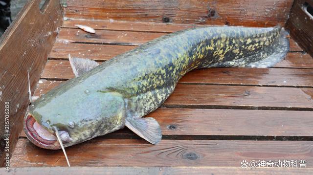 欧洲巨鲶,又称为六须鲶鱼,主要分布于欧洲的大河流和湖泊中。六须鲶鱼身体长而无鳞,最长可达5米。它们具有宽扁的鱼头,特别引人注目的是它们张开的阔嘴,里面排列着数百颗类似砂纸般细小的牙齿,这使得它们能够像吸尘器一样将猎物吸入口中。六须鲶鱼的寿命比中华鲟还要长,可以活到80年,并且是世界上最大的鲶鱼之一。它的5米身长相当于3.22个郭敬明身高1.55米的人,或者2.21个姚明身高2.26米的人。 6、电鳗