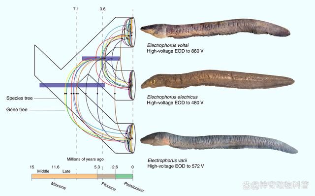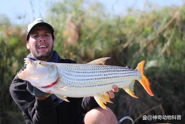 电鳗,属于电鳗目、裸背电鳗科、电鳗属动物,具有强大的电击能力,足以使人昏迷。它是淡水鱼类中放电能力最强的一种,输出的电压可达300至800伏特,因此被称为水中的"高压线"。裸背电鳗还被美国《国家地理》杂志网站选入了"地球上最令人恐惧的淡水动物"之一。尽管电鳗具备放电能力,但在其原产地,它也是一种著名的食用鱼。同时,它也常被作为水族馆中的展示鱼或观赏鱼。 7、非洲虎鱼