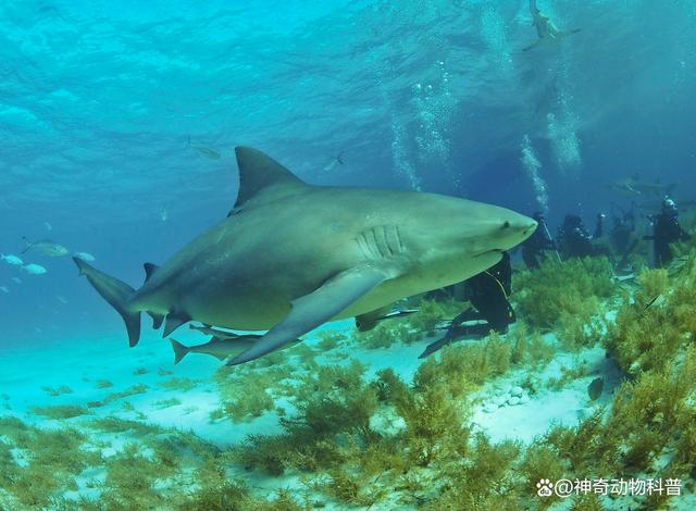 公牛真鲨,学名牛鲨,属于真鲨科中的一种。它是一种能够在淡水河流和湖泊中生存的鲨鱼,同时也是三种对人类最具威胁的鲨鱼之一。牛鲨的身体呈纺锤形,躯干庞大。雄性成年牛鲨的长度可达157至226厘米,最长可达299厘米;而雌性成年牛鲨的长度可达180至230厘米,最长可达324厘米。牛鲨栖息在沿岸、海湾、河口、河流或湖泊等水域,其捕食猎物的速度极快。它们主要以硬骨鱼类为食,同时也会捕食其他鲨鱼、甲壳类动物、头足类动物、海胆、海蛇、海龟,甚至吞食垃圾等。 2、鳄雀鳝