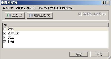 在Excel以前的版本中,可以通过“高级筛选”来删除重复记录,在Excle 2007中不但保留了“高级筛选”这个功能,而更为值得注意的是Excel 2007增加了一个“删除重复项”按钮,从而这项操作变得更加方便、快捷。 首先选择需要删除重复项的所有单元格。如果是要对所有数据进行这一操作,可以任意选择一个单元格。 在工具栏中选择“数据”选项卡,再单击“排序与筛选”区中的“删除重复项”按钮。 在弹出的“删除重复项”对话框选择要检查的字段,最终将只对选中的字段进行比较。这里选择后三个字段。 最后单击“确定”按钮,多余的重复项就被删除了。