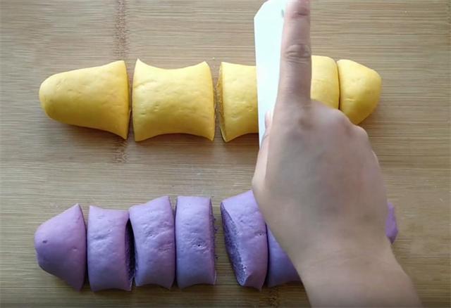 3.待面团苏醒,我们将它们取出,轻柔地揉搓,排出所有的小气泡,这一步是确保馒头口感细腻的关键。随后,将两个面团分别搓成长条状,再将每个长条均匀分割成八个小面剂子。(www.ws46.com)