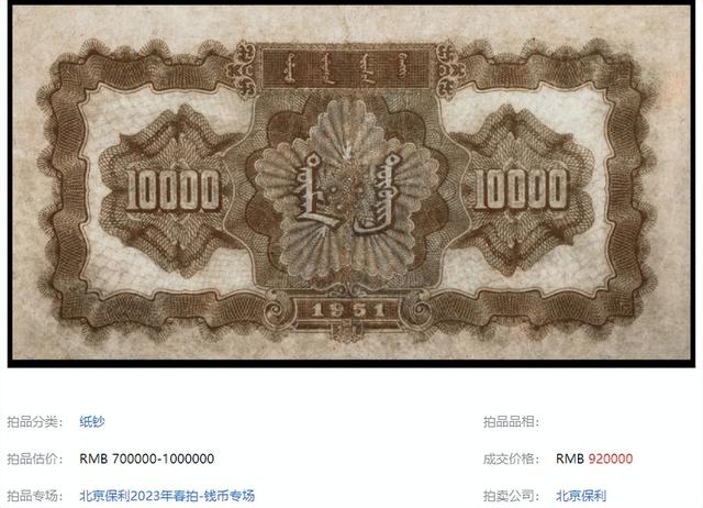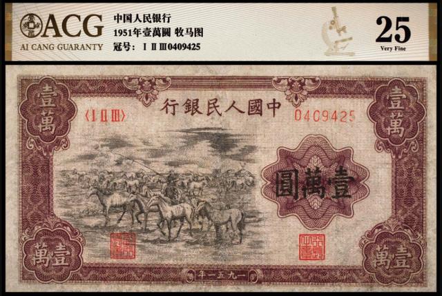 在当时,当地并不习惯使用货币,因此纸币的投放量本就稀少。再加上当时没有啥收藏的氛围,在一版币退市的时候,大家基本都换成了二版币。 根据统计,如今10000元牧马图的存世量大概只有100张,是最为稀少,于是它成为了币王。