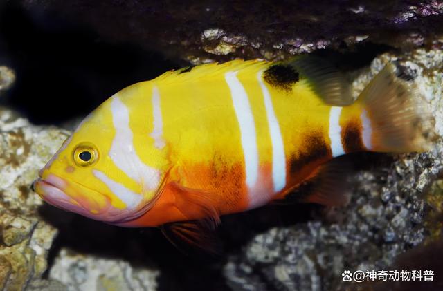 黄金狐是鲈科鱼家族中最小的一员,主要栖息于太平洋和大西洋海域。它展现出极强的生命力,在水族箱中也能良好适应。尽管如此,市场上对黄金狐的了解仍然很有限,因为捕捉这种鱼需要使用深海潜水艇。这种小鱼非常害羞和胆小,一般情况下除了进食外,都会躲藏起来,很少见到身影。此外,黄金狐在成年后身体会变成漂亮的黄金色,其价格高达8000美元以上(约合人民币54990元)。 7、海王星石斑(4.1万元/条)