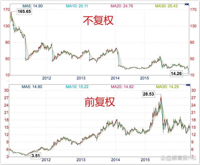 复权是一种技术手段,用于调整股票价格以反映其真实价值。它通过调整股票除权后的价格,使其与除权前的价格保持一致,从而反映股票的真实价值。 接下来,我们将探讨复权一般选前复权还是后复权的问题。在解答这个问题之前,我们首先需要了解前复权和后复权的区别。 一、前复权和后复权的区别前复权和后复权是两种不同的复权方法,它们在调整股票价格的方式上存在明显的区别。 1、前复权:以前一次除权价格为基准价格,将当前股价进行向前调整,以反映股票的真实价值。前复权适用于长期投资分析,因为它能够全面反映股票的历史表现和真实价值。 2、后复权:以后一次除权价格为基准价格,将除权后的股票价格进行向后调整,以反映股票的真实价值。后复权适用于短期投机分析,因为它能够准确地预测未来走势。 二、选择前复权还是后复权?在选择前复权还是后复权时,投资者应该根据自己的投资目标和策略来决定。以下是两种选择的适用场景和优缺点: 1、前复权:
