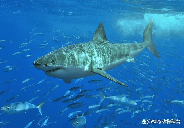蝠鲼,即人们通常所称的魔鬼鱼,主要分布在热带和亚热带的浅海区域,在中国的福建、浙江和黄海等地可以观察到某些种类。蝠鲼体型庞大,在海洋中只有大型的鲨鱼才能够捕食它们。与传统鱼类不同,魔鬼鱼没有纺锤形的身体,也没有背鳍。它们拥有宽阔的三角形胸鳍,以及像风筝一样的圆盘状身体,因此能够进行旋转式跳跃,跃出海面,并且通常能够跳至离水面1.5米高的高度。 4、大白鲨 3.2吨
