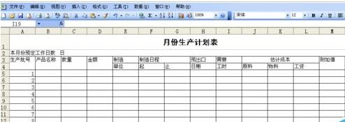 把标题生产计划表所在单元格合并居中,把文字设为黑体,16号。