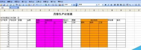 给制造日程和估计成本背景色分别填充为粉色和橙色。