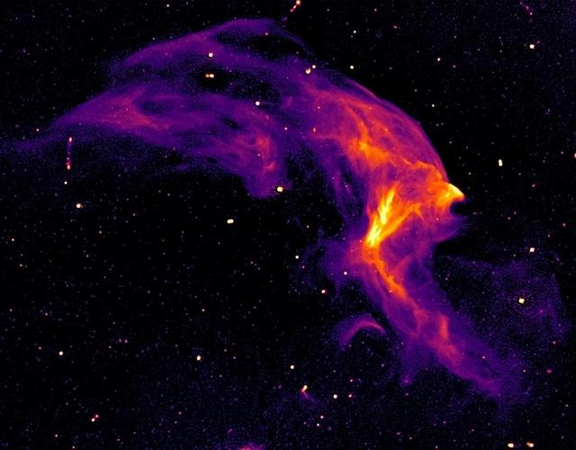 当两个超大规模的星系团发生碰撞时,我们用射电望远镜就能看到它们在电磁波频段爆发的超级冲击波,整个过程类似于超音速飞机的音爆。 具体到这次的冲击波上来看