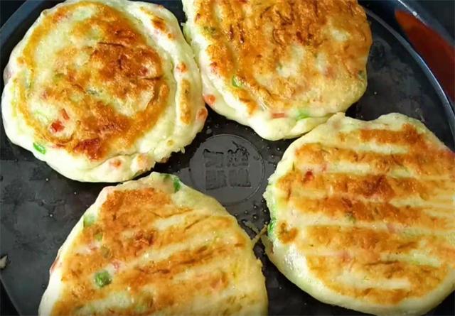 6.这时我们电饼铛开小火,刷上一层薄薄的油,待油温适宜时,轻轻挤出面糊,用筷子稍作调整,让饼形更加圆润美观。随后,再于饼面轻轻淋上少许油,以防粘连,盖上盖子焖一分钟,一分钟之后我们开盖翻面,这个时候饼基本已经熟了,我们盖上盖子再焖一分钟,烙至两面金黄,按压快速回弹即可出锅。