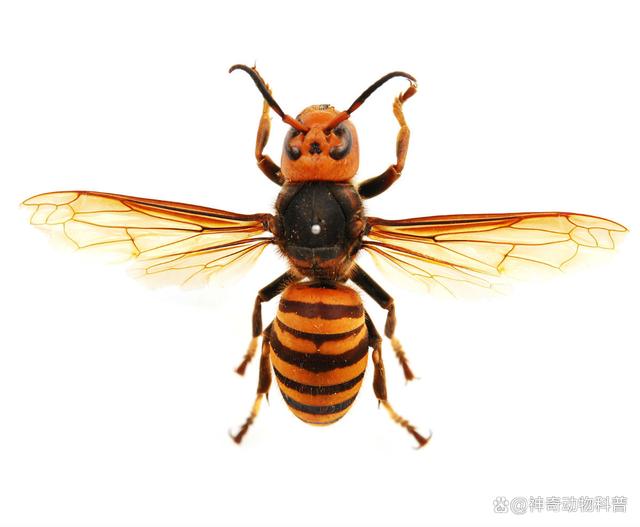 4、日本大黄蜂 日本大黄蜂,又称为亚洲大黄蜂,在学术界被命名为Vespa mandarinia japonica,是世界上最大的黄蜂之一,体长可达5厘米以上。它们主要分布在日本、中国、朝鲜半岛和东南亚等地区。日本大黄蜂是一种高度进攻性的昆虫,通常在夏季时出现。它们的巢穴通常建在树洞或人造环境中,一个巢内可以有500-1000只工蜂。日本大黄蜂的毒液含有较高浓度的多种化学物质,能够对人产生强烈的神经、肌肉和心血管反应。日本大黄蜂的攻击力量很强,个体较大的成年蜂甚至可以单独杀死数百只蜜蜂。而当日本大黄蜂攻击人类时,由于其强大的攻击力和毒液危害,极易引起人类的死亡。因此,一旦发现日本大黄蜂活动的踪迹,一定要及时采取措施防范和消灭,以避免危害人类和其他昆虫。