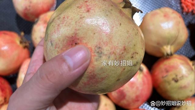 4,捏弹性。(www.Ws46.com) 在选购石榴时,我们还可以将它拿在手上捏一捏。如果石榴捏起来手感软软的,很可能是因为内部的石榴籽已经腐烂,或是在搬运过程中受了伤,剥开来,里面的石榴籽也是黑色的。优质的石榴在捏起来时会有一定的弹性,并不会凹陷。这样的石榴切开后,里面的石榴籽饱满且新鲜。如果今天的文章对您有帮助,那就点一个关注,点一个赞,感谢您的支持。