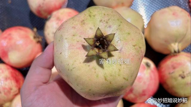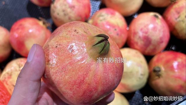 3,看顶部的花苞。 在石榴的顶部都是有一个小花苞的,当我们仔细观察这些花苞时会发现,有些花苞已经完全张开,有些则仍紧紧包裹着。对于这两种形态的花苞,我们就应该选择花苞完全张开的石榴,这样的石榴成熟度好,甜度高且汁水充足,非常美味。而那种花苞未张开的石榴,就表明成熟度比较低,口感也就会相对比较差了。