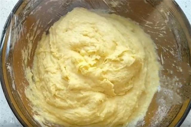 2.接下来我们在玉米面中加入四克酵母,20克白糖,糖的量可以依据个人口味增减,搅拌均匀之后,分次加入150到200克的面粉,这个量根据玉米面的吃水量决定,顺着一个方向搅成细腻粘稠的面糊,面糊要尽量调的干一些,这样做出来的烤糕筋道且中间不发粘。盖上保鲜膜醒发1小时,或者放冷藏醒发一晚,早上起来更加方便。