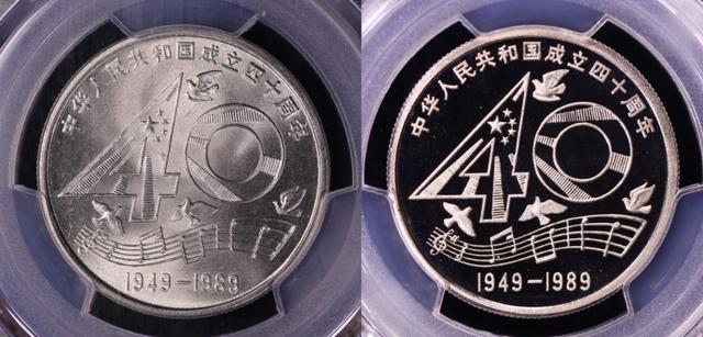 这枚面值1元的40周年纪念币,是当年我国唯一发行的1元硬币。因为币面有大大的40字样,这枚1元也被藏友形象地称为大40。 考虑到题材重大,且当时长城币已经停发,89年1元的发行量是比较巨大的,一共达到2100万枚。因此,确实有很多人家里会有。 但是大家拿到手的,都是普制币。目前89年1元的普制币,也能翻40倍的样子。 而八大珍之首的,是精制币。