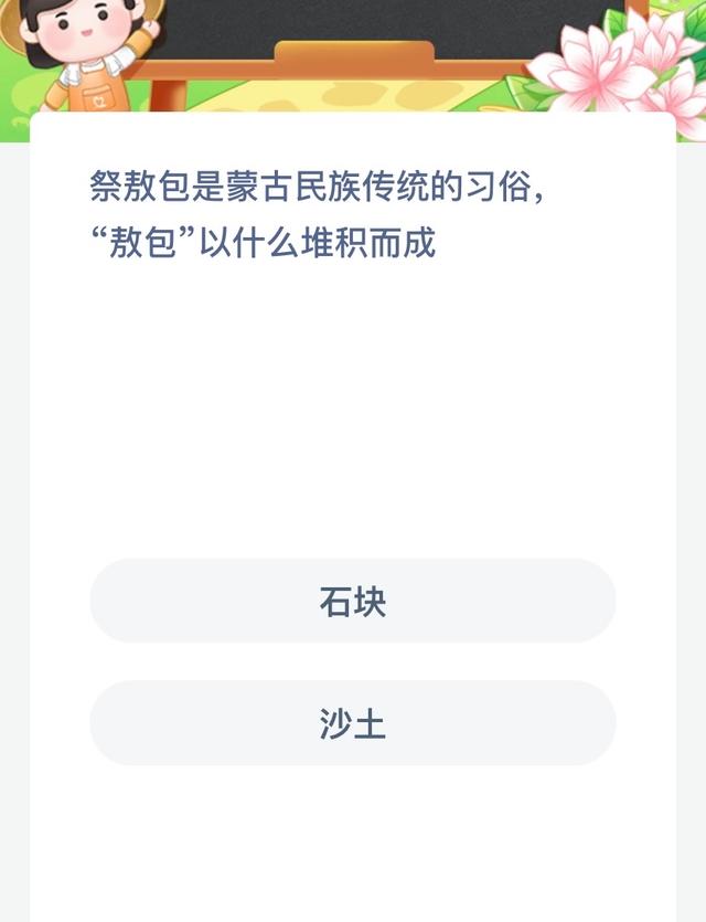 祭敖包是蒙古民族传统的习俗,敖包以什么堆积而成?蚂蚁新村每日答案 正确答案:石块 蒙古,是一个古老而神秘的民族,拥有着悠久的历史和丰富多彩的文化。在蒙古族的传统习俗中,有一种独特的祭祀仪式,那就是“祭敖包”。敖包,是用石块堆积而成的祭坛,被蒙古族人视为与神灵沟通的媒介,是对祖先的崇敬,对自然的敬畏的象征。 敖包是蒙古语,“敖”意为包围,“包”意为祭坛,敖包的建造是一个庄严而神圣的过程。通常,祭敖包的地点选在自然环境优美的山坡、河畔或者草原上,地理位置的选择对于蒙古族来说非常重要,他们相信特定的地点能够与神灵相连接。 在祭敖包的前夕,家家户户都会准备充足的供品,这些供品通常是牛、羊、马等牲畜,以及奶酒、奶茶、白面馍等食物。一切准备就绪后,族人们齐聚在敖包的周围,由族长或者乌素(蒙古族萨满教的祭司)主持祭祀仪式。 他们会高声吟唱祷文,表达对神灵的虔诚祈愿和对祖先的敬意。然后,将供品摆放在敖包上,以示对神灵的奉献。在祷告和祭奠的过程中,族人们跪拜在地,表达虔诚的心意。(www.wS46.com) 接下来是最重要的环节——焚烧供品。他们点燃篝火,让炽热的火焰熊熊燃烧,将供品烤熟,让香气飘散在空中。蒙古族人相信,食物的香气能够传达给神灵,而神灵也会回应人们的祈祷和供奉。 在这一天,人们放下一切矛盾和纷争,共同祈求风调雨顺,牲畜丰收,家庭幸福。同时,也是族人们交流感情、增进友谊的时刻,他们围坐在篝火旁,共享着烤肉的美味,共同歌舞欢庆,一同度过一个愉快而难忘的夜晚。 随着现代社会的发展和文化交流的增多,一些传统的习俗逐渐被淡忘。在城市化的过程中,越来越多的蒙古族人离开家乡,传统的祭敖包习俗也受到了一定程度的影响。但是,幸运的是,仍有一些坚持守护这一传统的族人,他们不断传承和弘扬祭敖包的文化,使其在现代社会中焕发出新的生命力。 祭敖包是蒙古民族的传统习俗,是他们与神灵、与自然紧密联系的一种方式。在这个仪式中,人们表达了对祖先和自然的敬畏与感恩,也传递了对美好未来的祈愿。让我们一同欣赏和尊重蒙古族的这一传统习俗,希望这份独特的文化能够在世代传承中永远绽放光彩。 |