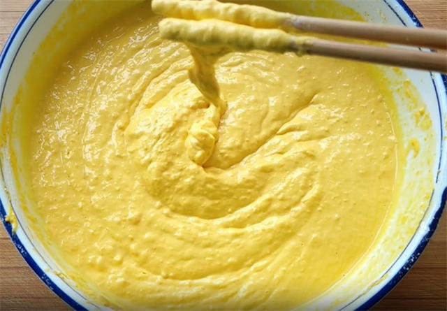 2.趁热加入约300克左右的糯米粉,边倒边搅拌,搅成细腻粘稠的面糊即可。