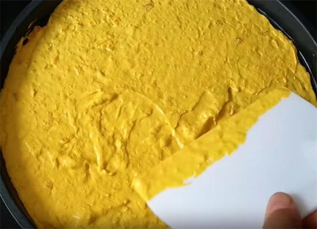 6.然后在豆沙上面再倒入约4分之1的面糊,用刮板再次把它刮平刮均匀,然后盖上盖子再焖一分半钟左右开盖。