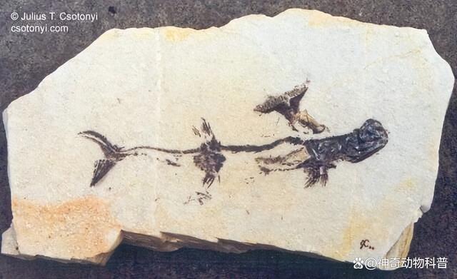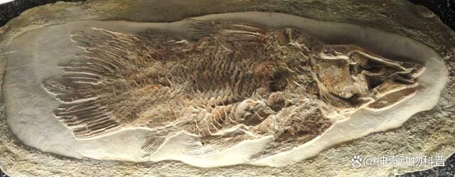 生活在4.3亿年前至4.2亿年前的奥陶纪时期。它是一种原始的鱼类,具有较为简单的体型和头骨结构。流线型的身体覆盖着成排多节的装甲鳞片。身体的前部和头部由硬板保护,上面有眼睛、鼻孔和鳃的开口。它可能是滤食器。它没有鳍;它唯一的推进方法是使用垂直扁平的尾巴。因此,它可能以类似于现代蝌蚪的方式游泳。伦敦自然历史博物馆的Arandaspis的化石。 9、叶鳍鱼(Eusthenopteron)