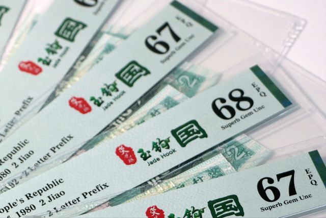 比如80版2角通常情况下,普通的品种一刀就是400左右,也就相当于一张4块左右,这是普通的2角,但是有些2角市价就非常高,所以有些人就不太理解为什么这么高?比如其中有一个叫做玉钩国的品种,一张竟然可以达到将近100,如果你不理解,不了解这个版别,你可能觉得这是一种忽悠。