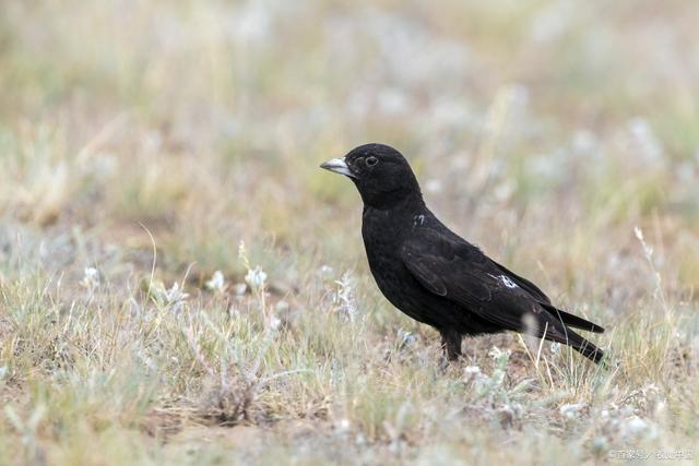 6、黑百灵 黑百灵是百灵科百灵属的一种,分布于欧亚大陆及非洲北部。雄鸟易辨,通体黑色;雌鸟似二斑百灵但下体纵纹浓密,翼合拢时偏黑色,飞行时翼下黑色,腿青石灰色。黑百灵飞行时的叫声似云雀,鸣唱飞行时振翼放慢,高飞时直冲入云,在地面亦善奔走,受惊扰时常藏匿不动,因有保护色而不易被发觉。常站高土岗或沙丘上鸣啭不休,鸣声尖细而优美。