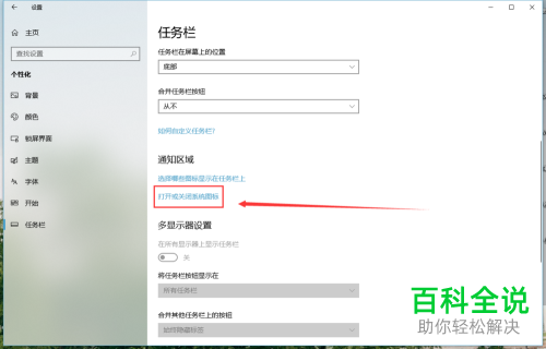 5. 第五步,我们会看到如下图所示的页面,点击箭头所指的“打开或关闭系统图标”选项。
