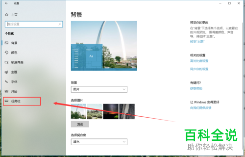 4. 第四步,点击窗口左边的“任务栏”选项。