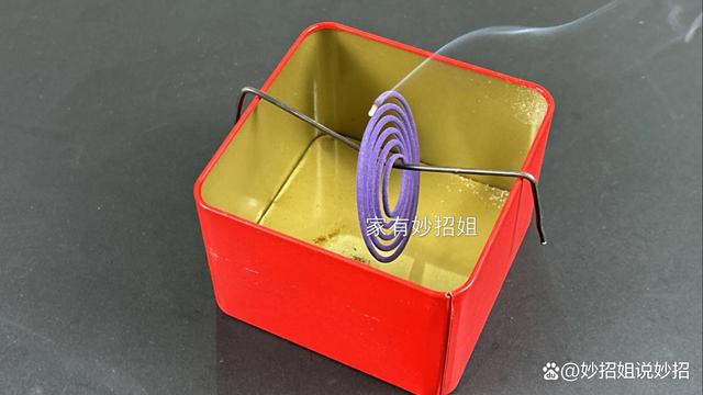 接下来,我们再拿个铁皮茶叶盒,将盖子打开后,直接把弯折好的铁丝架在上面,蚊香则悬空于茶叶盒的中间。这样茶叶盒就相当于是一个支架了,它耐用还防火,而且当蚊香点燃后产生的灰烬也会掉落在里面,不用担心弄得到处都是。如果今天的文章对您有帮助,那就点一个关注,点一个赞,感谢您的支持。