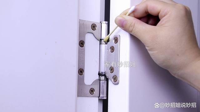 妙用四:润滑合页。 家里的门、窗户、柜子等上面都是有合页的,而合页是金属材料,时间用久了之后,容易出现生锈的情况,一旦合页出现生锈,开、关的时候就会有“咯吱”的声响,而且比较卡顿。这时,油烟机里的废油就可以派上用场。废油和机油一样,可以起到润滑的作用。我们只要用棉签蘸取废油,然后把它涂抹在合页的转轴上。等它静置上几分钟,废油充分的渗入到合页的内部后,我们再来开关门,就不会再有“咯吱”响的问题了,开关门也变得非常顺畅。