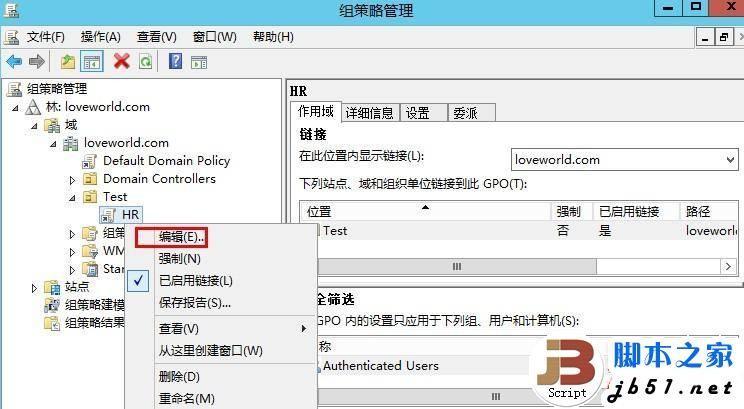 在HR上右键,点击编辑,就可以打开组策略了