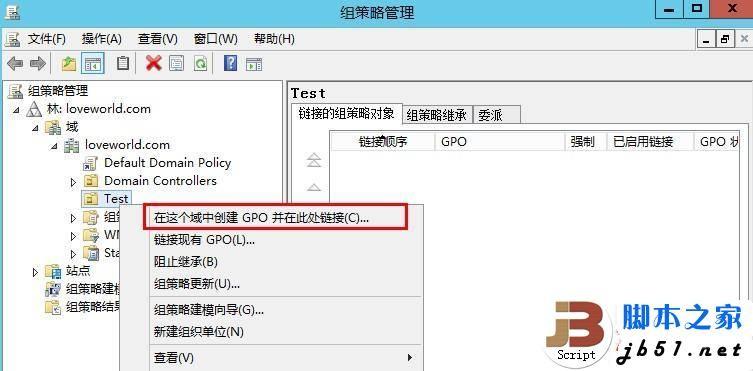 对用户的配置完成之后,我们打开组策略管理(server 2003叫做域组策略),然后在OU上面创建gpo并链接至此,然后随便起个名字,这里我起的是HR